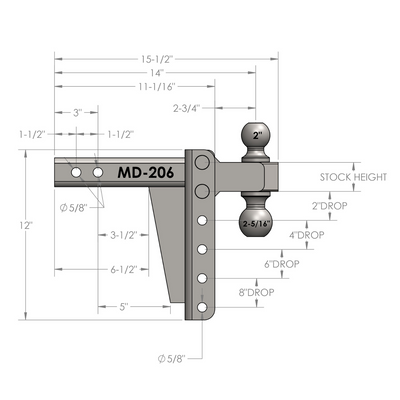 2.0" Medium Duty 6" Drop/Rise Hitch