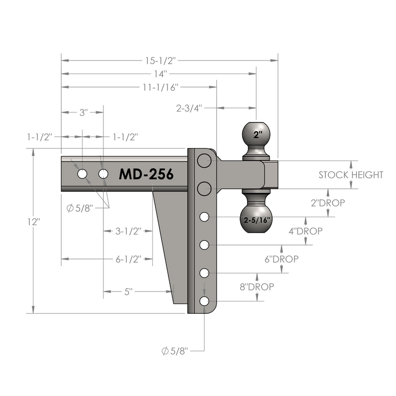 2.5" Medium Duty 6" Drop/Rise Hitch
