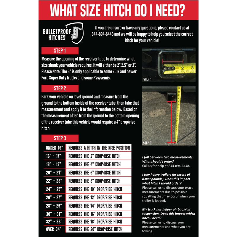 The BulletProof 2.5" Medium Duty 6" Hitch is a high-performance solution for towing up to 14,000 lbs with a 2,000 lb tongue weight. With 5 easily adjustable ride heights, it’s designed for a level, secure tow—every time.