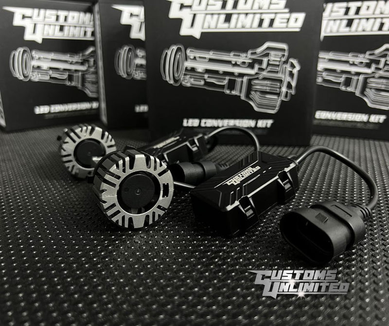 Experience UNMATCHED VISIBILITY with our Customs Unlimited LED Bulb conversion kit for 2023-2025 SUPER DUTY. Designed for maximum visibility & an upgraded look, this kit ensures you drive safely and with confidence, even in the darkest conditions.