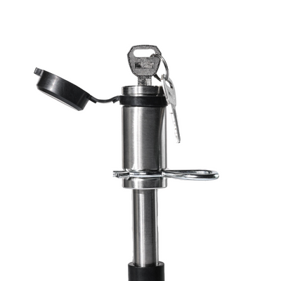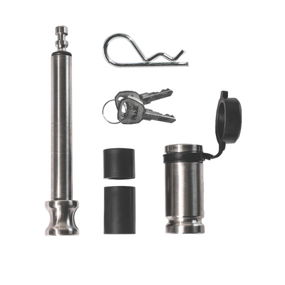 Includes anti-rattle spacers for 2" and 2.5" receivers to minimize movement. Rated up to 36,000 lbs, this heavy-duty pin offers a tight, theft-resistant hold with a thick, lockable barrel.