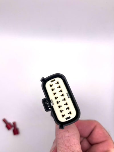 The plug-and-play harness connects between the headlight and the headlight harness on either side of the vehicle.