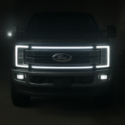 Give your 2017–2019 Ford Super Duty Platinum (F-250, F-350, F-450, F-550) a stealth front-end glow with this 35-inch “Ghost” LED grille light bar. The 6,500–7,000K daylight-white LEDs sit deep inside the factory grille, delivering a factory-plus look while staying hidden when off. The die-cast housing is fully sealed to IP67, shrugging off rain, mud, and road grit, with LEDs rated for 50,000 hours of runtime.