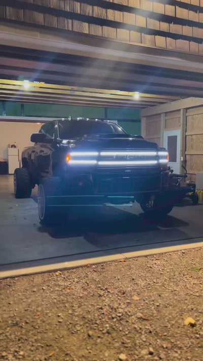 Curved LED accent bar custom-shaped for 2019–2024 Ram 2500 & 3500 Laramie grilles. The 6,500–7,000K white strip drops directly into the factory mesh with no cutting required, adding a bold DRL glow while keeping the OEM look intact. The IP67-sealed housing is fully waterproof and dust-proof, with LEDs rated for 50,000 hours of runtime. Choose a stealth-black or classic-silver anodized frame to match your build.