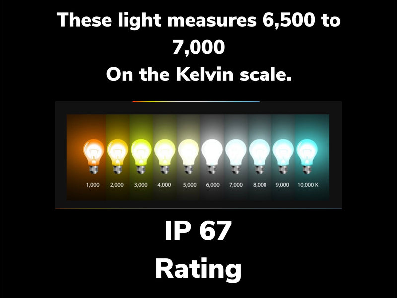 Most of our lights range from 6500K to 12000K, depending on the specific year, make, and model.