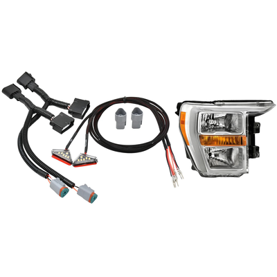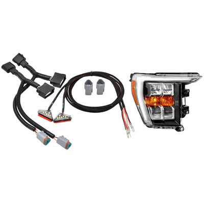 The plug-and-play harness connects between the headlight and the headlight harness on either side of the vehicle.