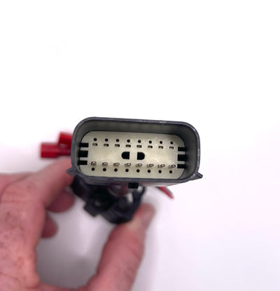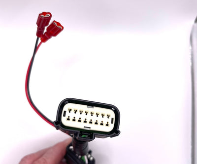 The plug-and-play harness connects between the headlight and the headlight harness on either side of the vehicle.