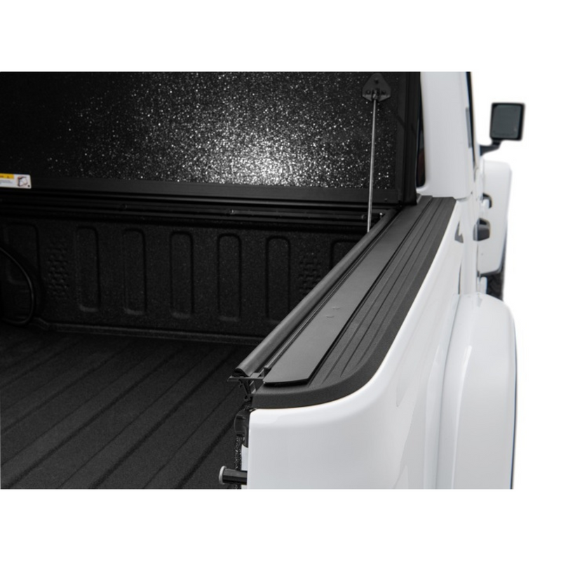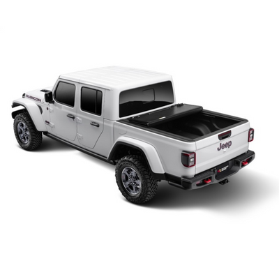 The new Armis Hard Folding Cover with LINE-X® for the Jeep Gladiator is engineered to safeguard your JT’s bed and cargo with uncompromising strength and style. Crafted from heavy-duty aluminum panels finished with premium LINE-X® specialty automotive coating, this cover delivers exceptional resistance to scuffs, scratches, and the toughest off-road challenges. Its innovative dual-action tailgate seal ensures full tailgate functionality—allowing you to close the tailgate securely no matter the position of the bed cover. Proudly made in the USA, the Armis Hard Folding Cover comes with a Limited 5-Year Warranty for peace of mind.