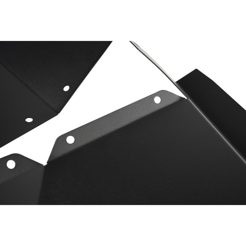 Designed to work seamlessly with trimmed OE fenders and most aftermarket flares, they offer the extra clearance you need to run larger tires with confidence. Integrated splash shields offer superior coverage compared to flimsy factory liners, while the durable black powder-coated finish keeps them looking sharp through every adventure.